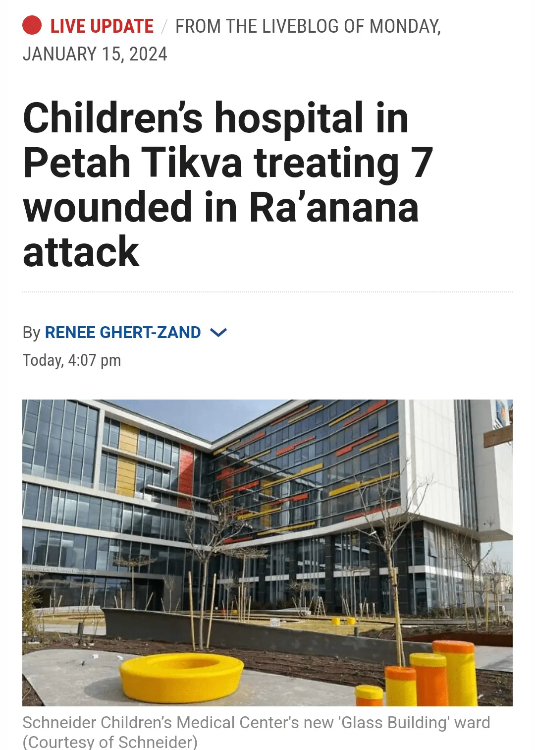 Combined attack in Ra'anana: murdering 1, at least 19 injured including 4 children, 5 in serious condition.