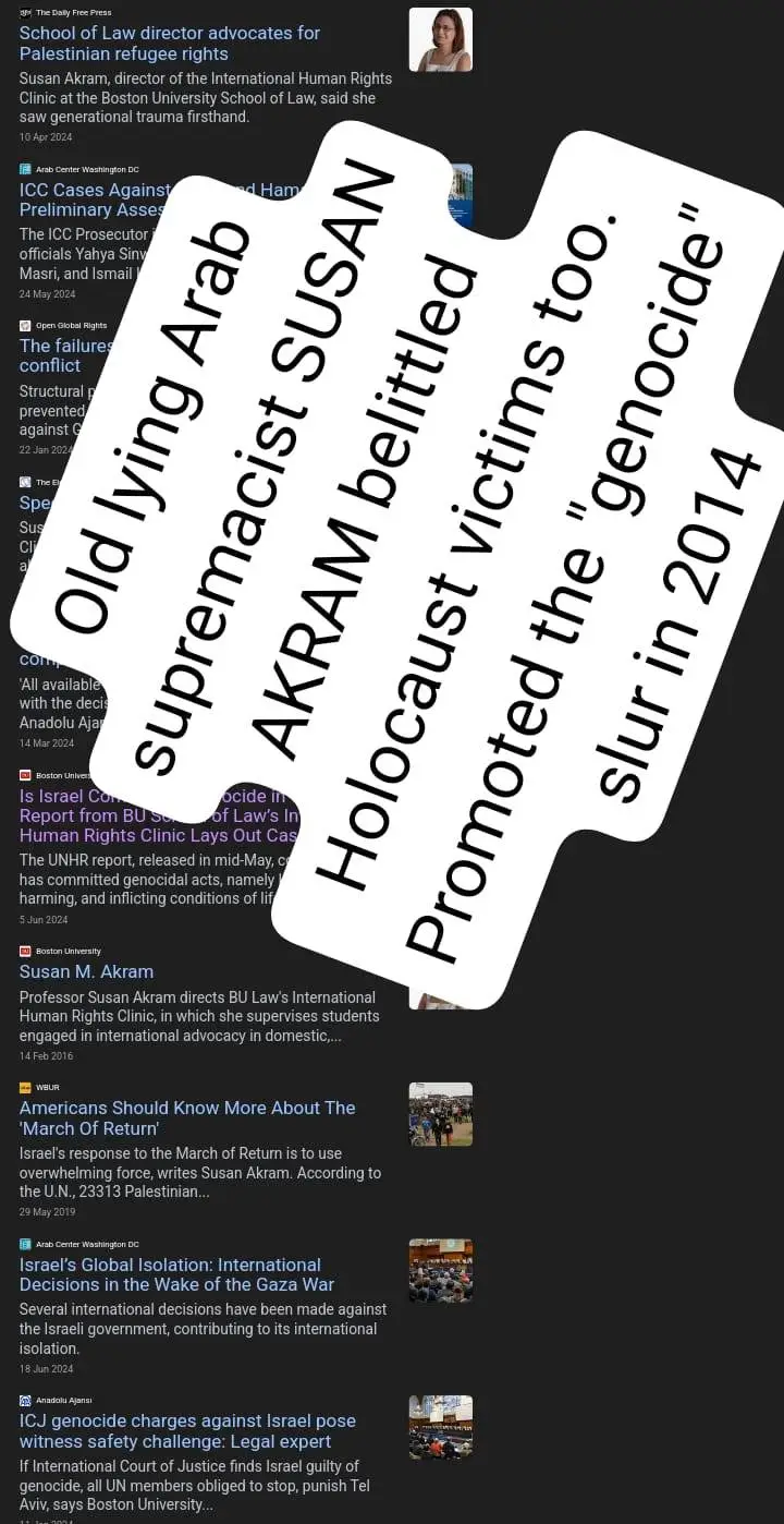 Racist supremacist Susan Akram has been busy with the fake "genocide" for years...