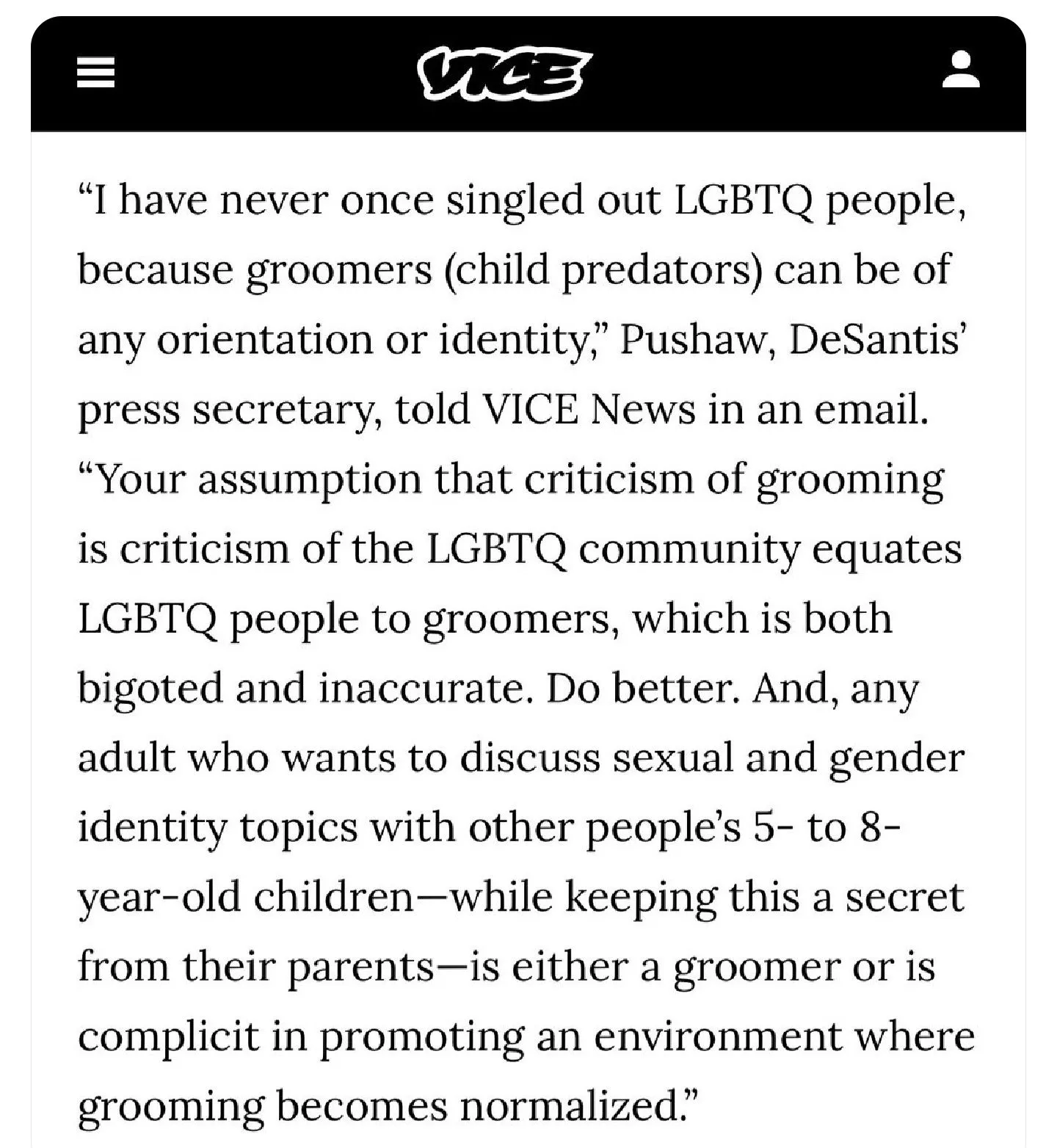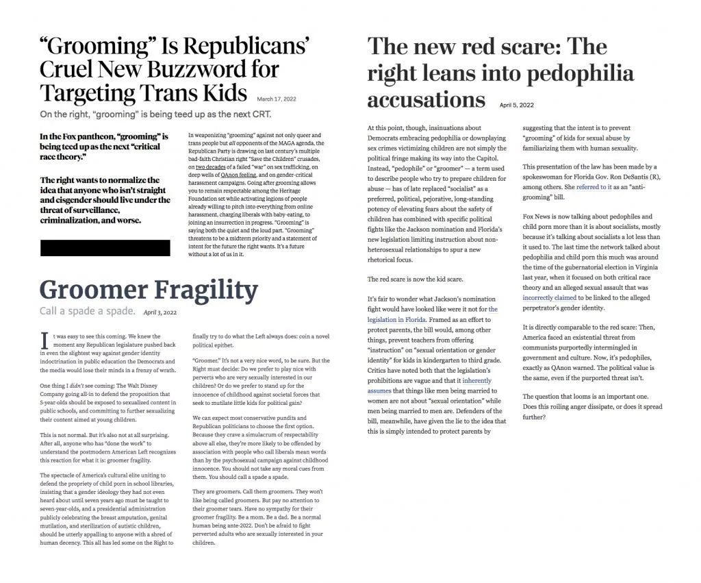 There is an inherent danger to the overuse, and misuse of words like pedophile, and groomer. When it's just arbitrarily tossed about, it tends to lose significance, and meaning. Much like the modern loss of value in words like racist, and Nazi; which lends excllent cover to actual pedophiles, groomers, racists, and Nazis...