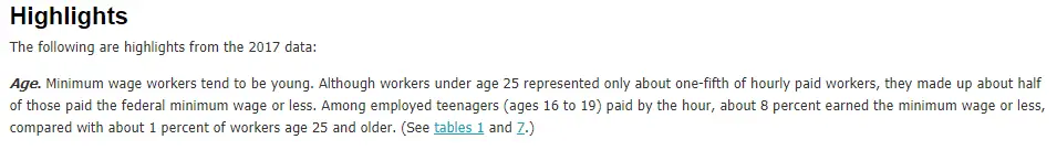 Half are under 25. Only about 1% of workers 25 and older earn minimum wage.