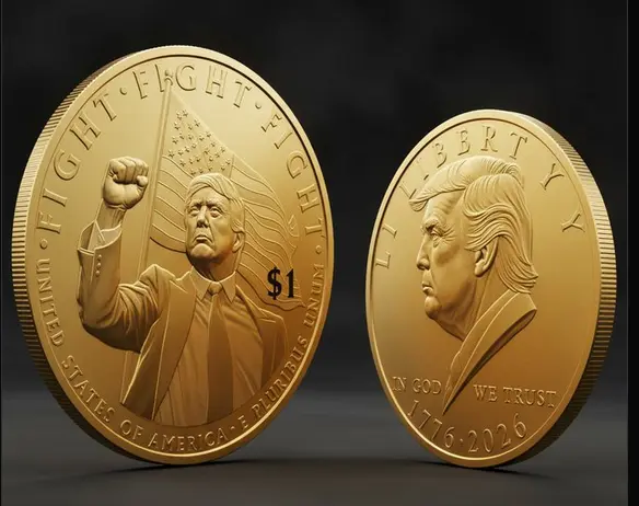 The draft images show Trump’s side profile on the front with “Liberty” at the top, “In God we Trust” on the bottom and the dates 1776 and 2026. On the reverse is the famous image of Trump raising his fist after the Bulter, Pennsylvania, assassination attempt, with the words “FIGHT FIGHT FIGHT” at the top and an American flag billowing behind his head.