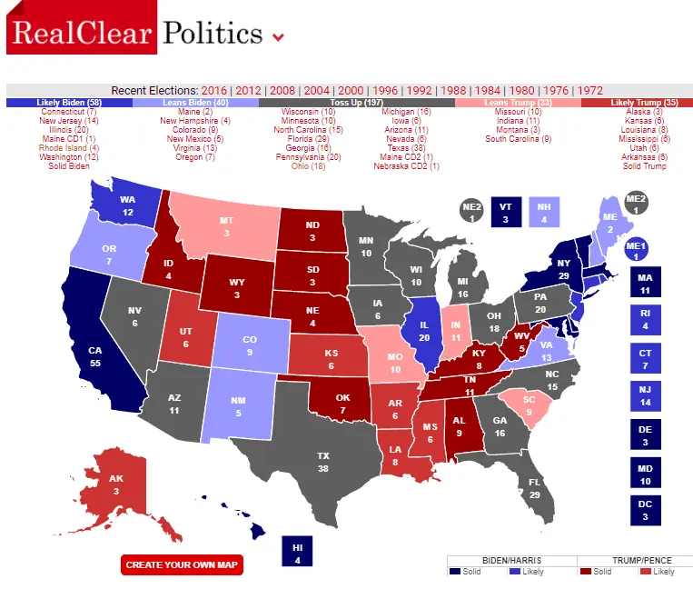 RealClearPolitics - 2020 Election Maps - 2020 Electoral College Map