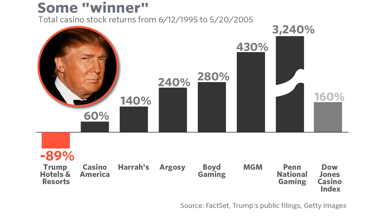 It wasn't the product, it was the business model, and that is on Trump. A failure. And some cases, it is worse than failure. Trump University, Trump actually paid a settlement, I mean it was fraudulent as hell. And I promise you, that word "fraud", it is going to develop a whole new meaning in the next couple of years.