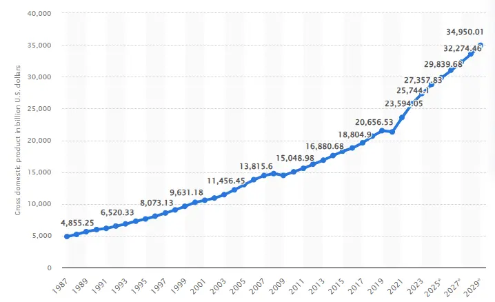 The statistic shows the gross domestic product (GDP) of the United States from 1987 to 2024, with projections up until 2030.www.statista.com