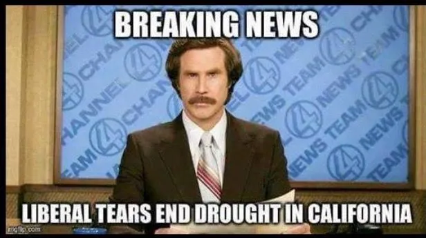 I thought all the liberal crying had been enough to quench the drought out there? What?Don't even get me started on the ridiculous *dought* nonsense.