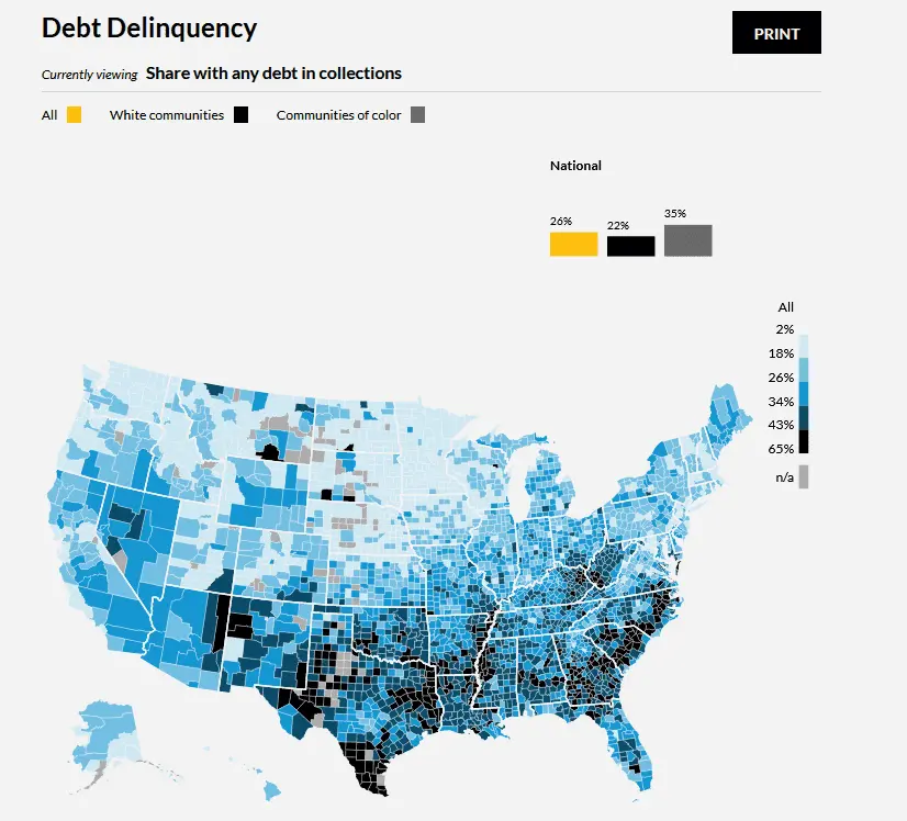 Up north, there are other interesting observations. There are only two Dem counties in North Dakota. Both of those have poor credit scores.