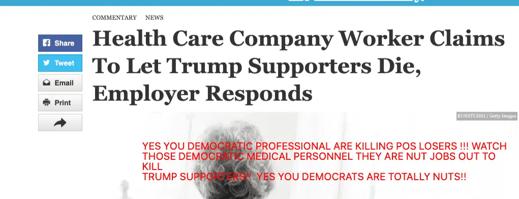 Wait until they have you on that surgery table and ur family can NEVER PROVE this prick would let u die ( a Trump hater) this is how they treat you -- this is why they are known to be PIGS!!!