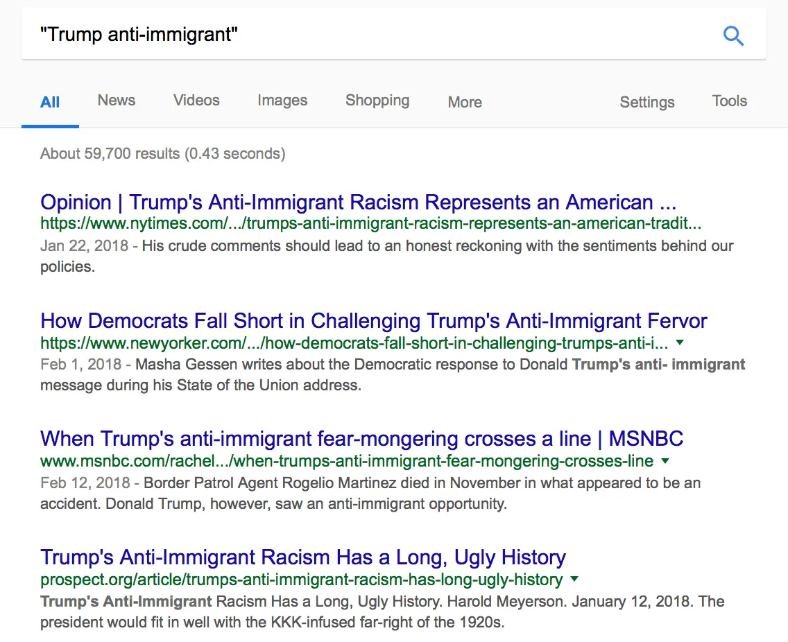 Here is a Google Search on "Trump anti-immigrant" and the results: