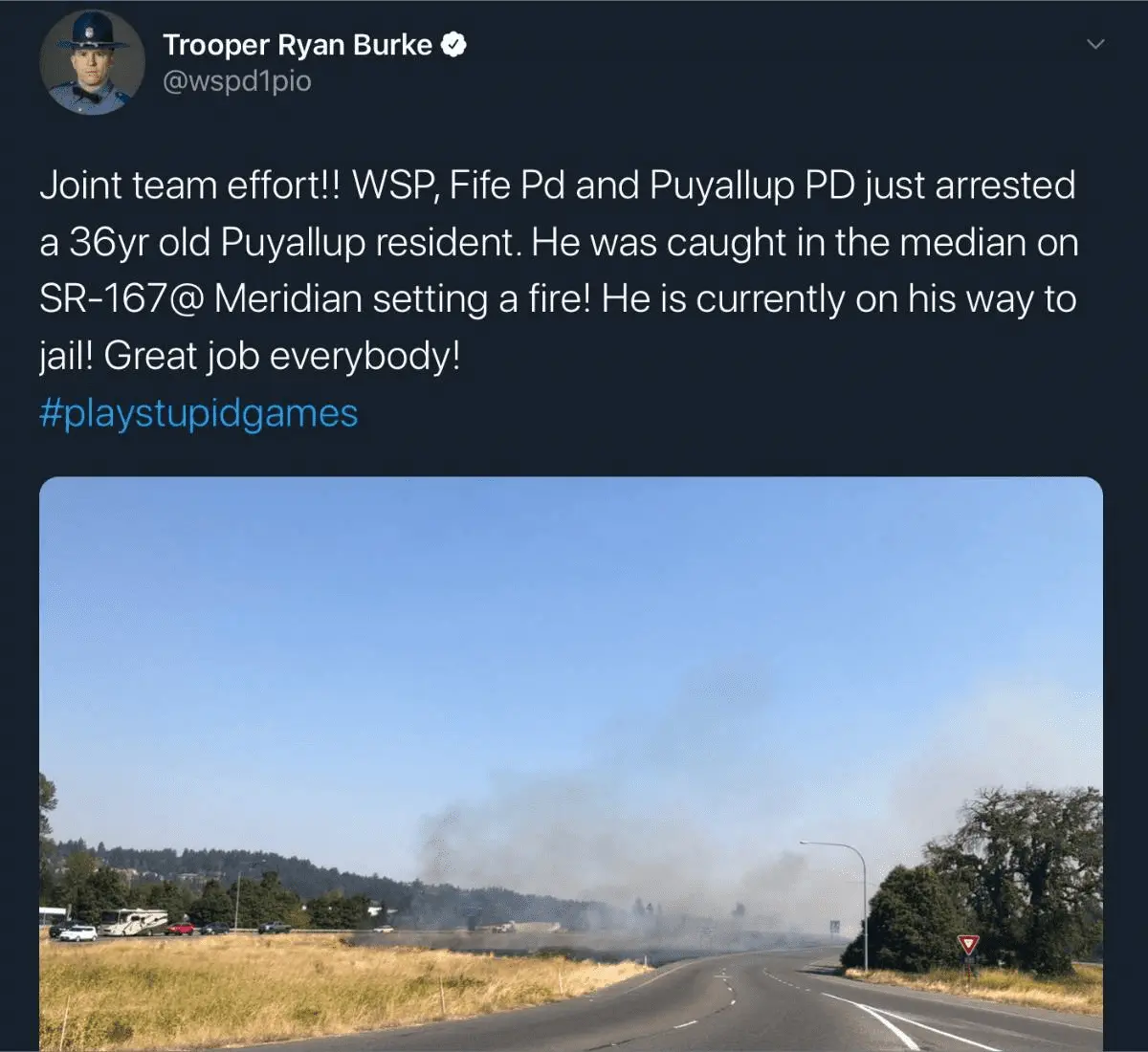 Other drivers, however,, told police they watched the 36-year-old Puyallup man walk into a field carrying a lighter and cardboard.