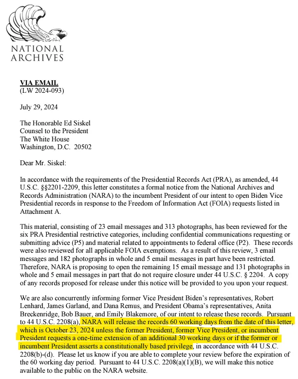 But Biden and Obama’s lawyers and representatives invoked an extension of 30 working days, so they have not been released until now.