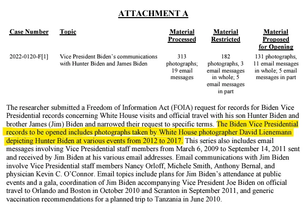 Even so, the Biden-Harris Administration is preventing the release of 182 of the 313 photographs that NARA processed.