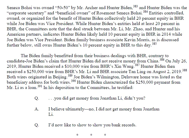 According to the Committee’s investigation, the Biden Family benefitted from their business dealings with BHR.