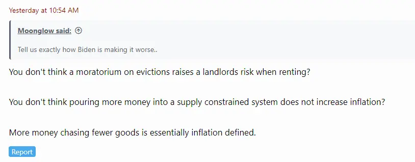 Did you bother to read my posts.Did Biden start the moratorium on evictions? If not why does he get all the blame for them?