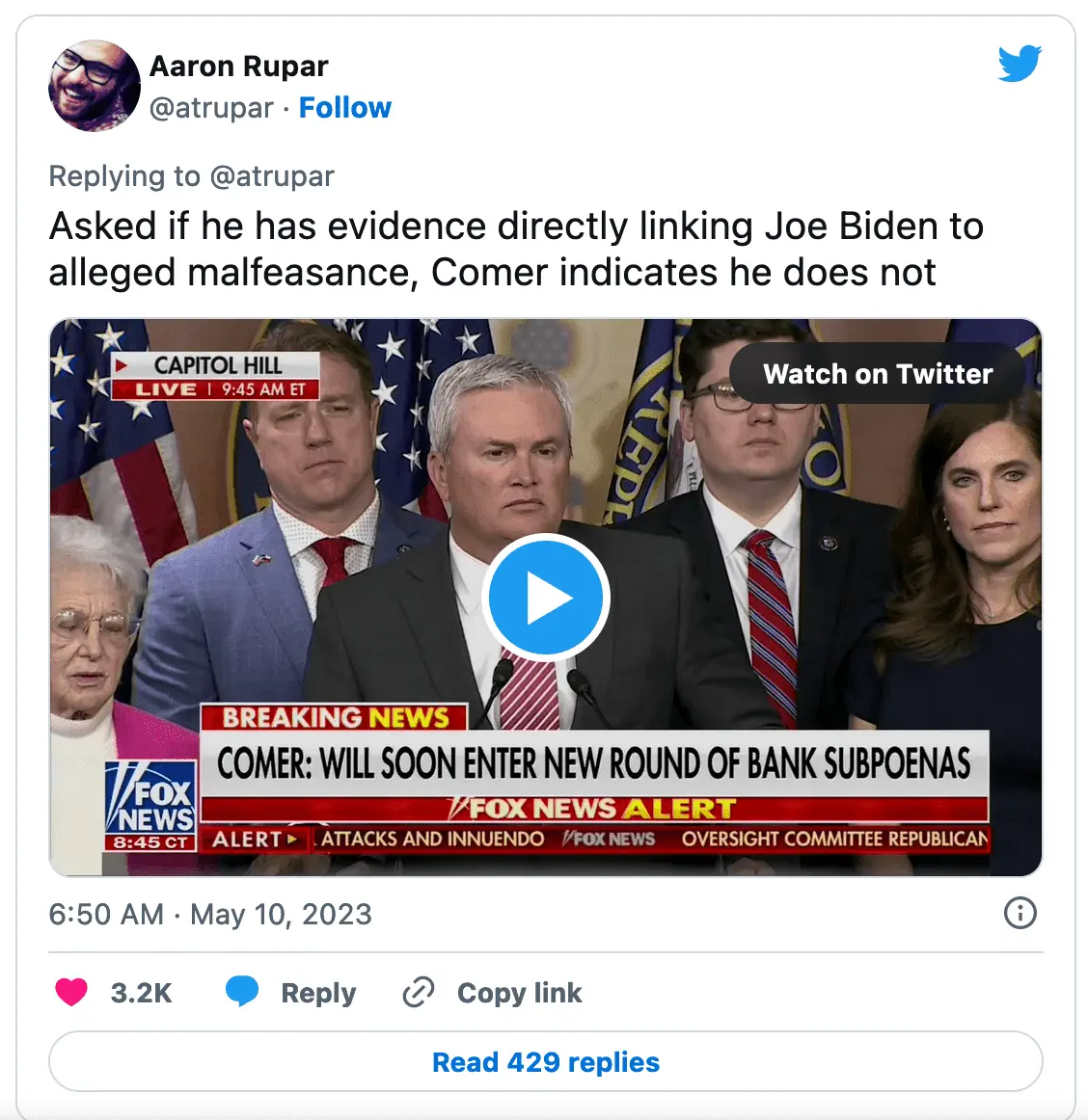 And a 'whistleblower' that has 'vanished without a trace' when Comer is pressed for evidence that Joe Biden did anything wrong.