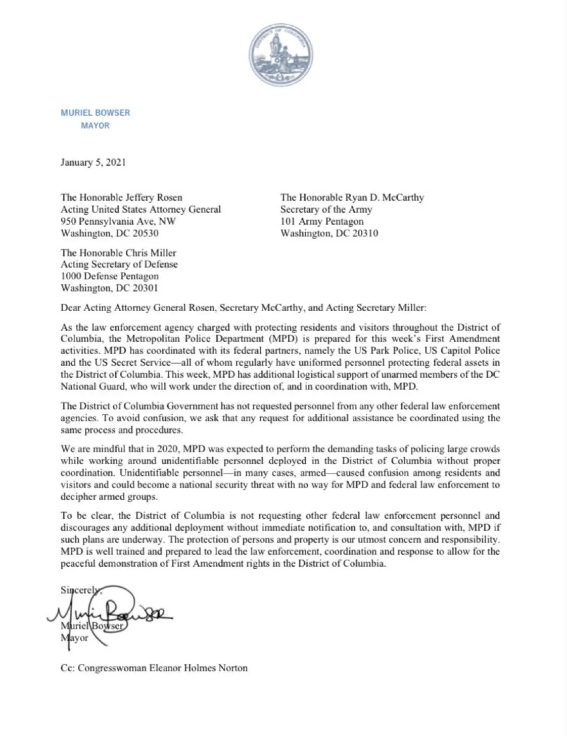 DC National Guard deployment refused by DC Mayor, Muriel Bowser: