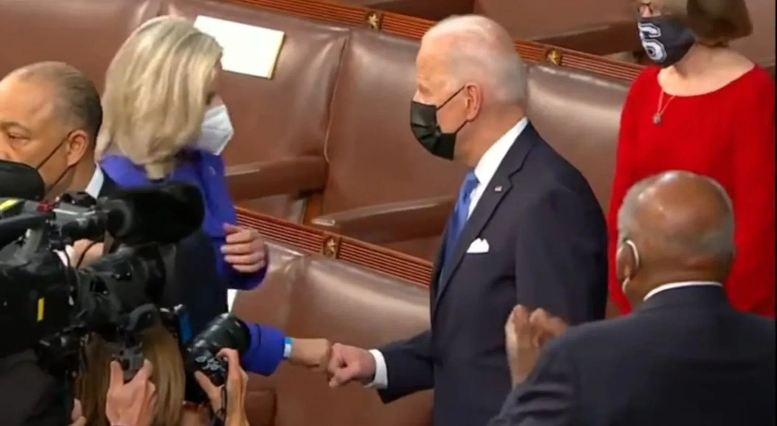 Rep. Liz Cheney scored a fist bump from President Joe Biden as he entered the House chamber for his first joint address to Congress.