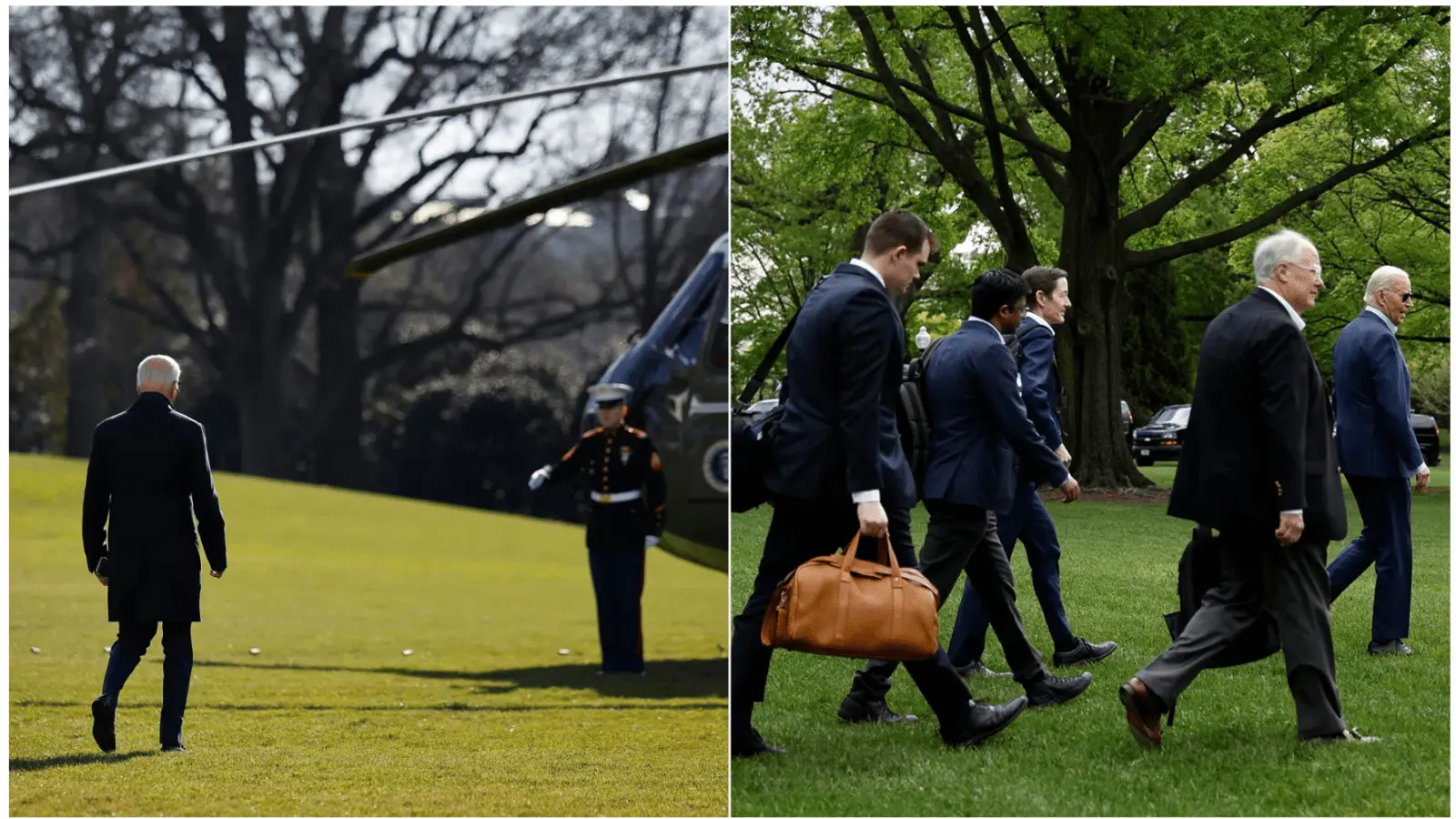 - Since the change, some advisers think the images of Biden's walks to and from the helicopter are better, and they expect him to continue to have aides join him.