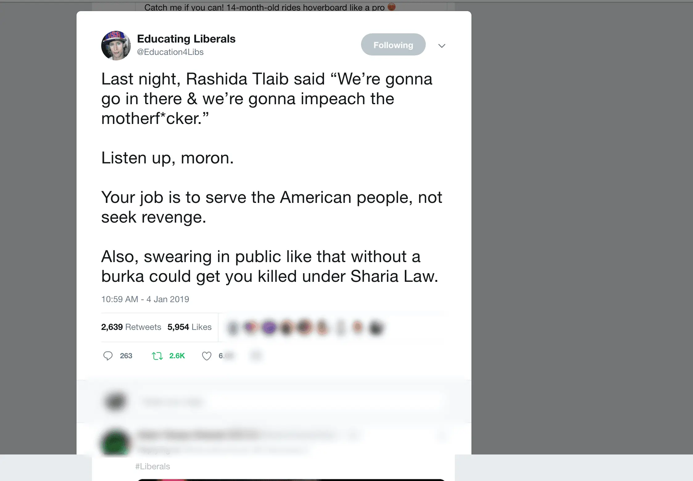 And after her swearing in she immediately called on President Trump’s impeachment — the “mother f*cker”!!