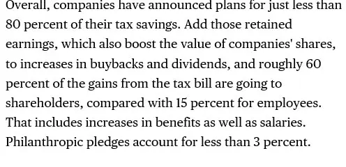 Maybe you should wish to think outside the box, and not be so rude and obnoxious. The comment reflects her and my understanding that the Tax Bill signed by Trump gives to the rich and corporate America money which they have used disproportionately to benefit those who don't need it, and won't allow it to trickle down to anyone else.