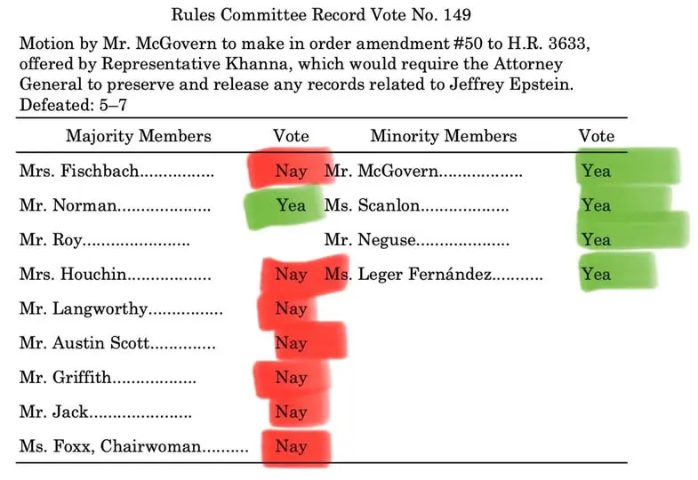 So, all but two Republicans voted to not release the Epstein list which DOESN'T EXIST. Hmmm... that's a little strange. If it doesn't exist, then you can release it.
