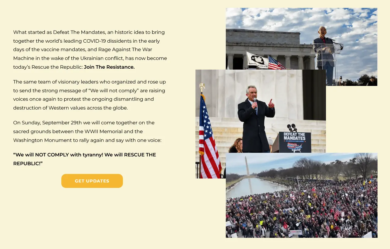 I will be joined by keynote speaker Robert F. Kennedy Jr., Russell Brand, Bret Weinstein, Matt Taibbi, Zuby, Dr. Pierre Kory and many more thought leaders and entertainers on Sept. 29, 12 p.m. ET in Washington, D.C., for “Rescue the Republic.”