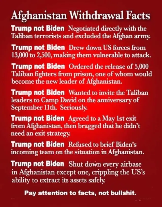 That's not what happened Biden didn't stick to anything Trump negotiatedPoor Biden, he couldn't change anything Trump started.