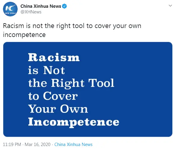 What we're talking about here is Chinese Americans (any Asian Americans, really) being assaulted here, and the corrupt, obvious CCP encouraging similar attitudes there.