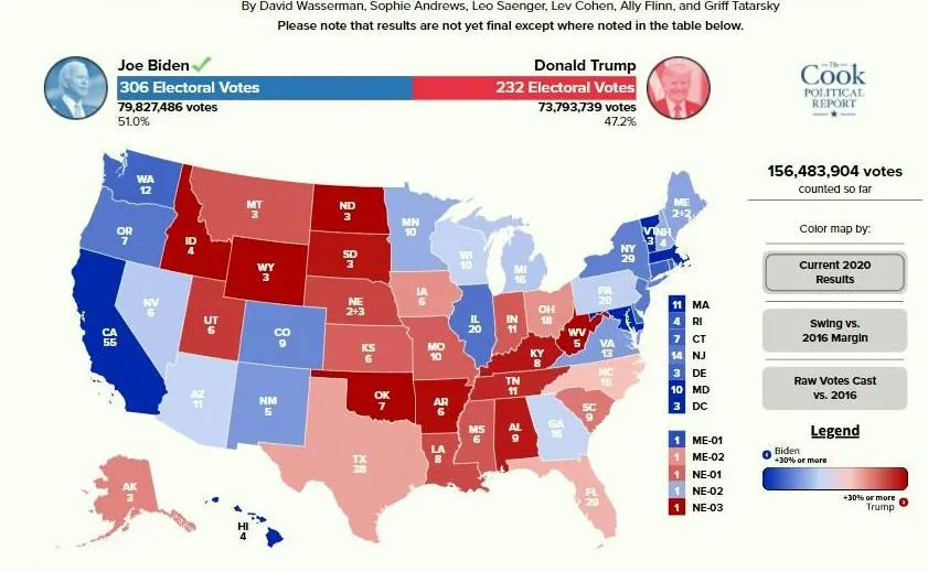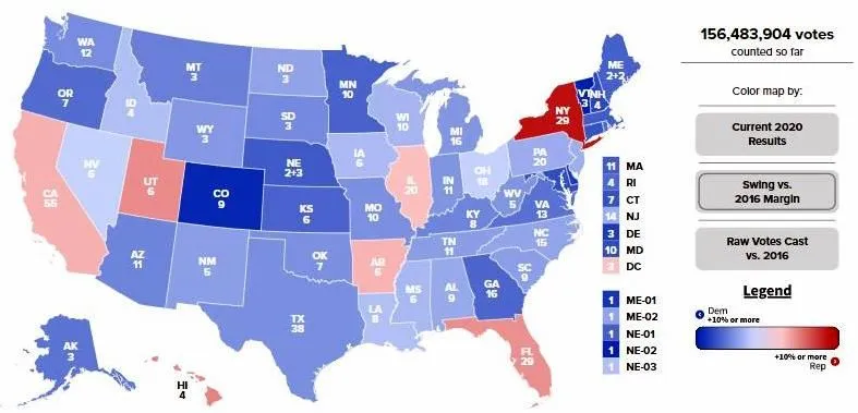 See all that blue? That's how much each state swung toward Biden (or away from Rump, really both) or in the case of the red ones how much it swung toward Rump. Far more of the former than the latter.