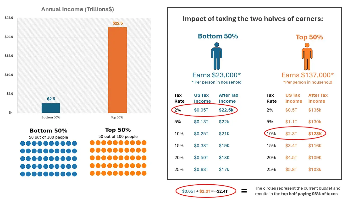 It’s not that simple, we’re a capitalist society, name a better system…I laid all that out in the OP with an easy to follow graphic. The Top make all the money which is why they pay all the taxes.