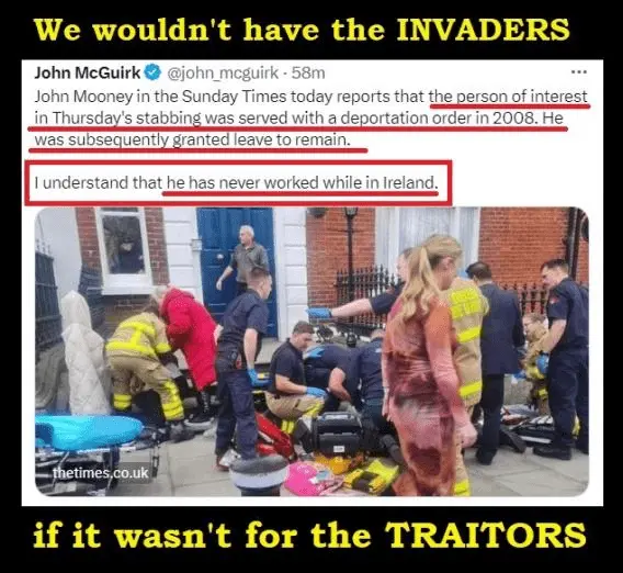 like things in sweden ….Violent protests erupted in Dublin Thursday night following a horrific stabbing outside a school in the city centre, leaving three children wounded and a community shaken.