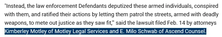IMO? The thrust of this, will mostly be on the police department. They were the ones responsible for calling in folks to help, and letting vigilante types, and militia types assist with crowd control, and not doing anything to intervene, if, anything does come of this.. . .