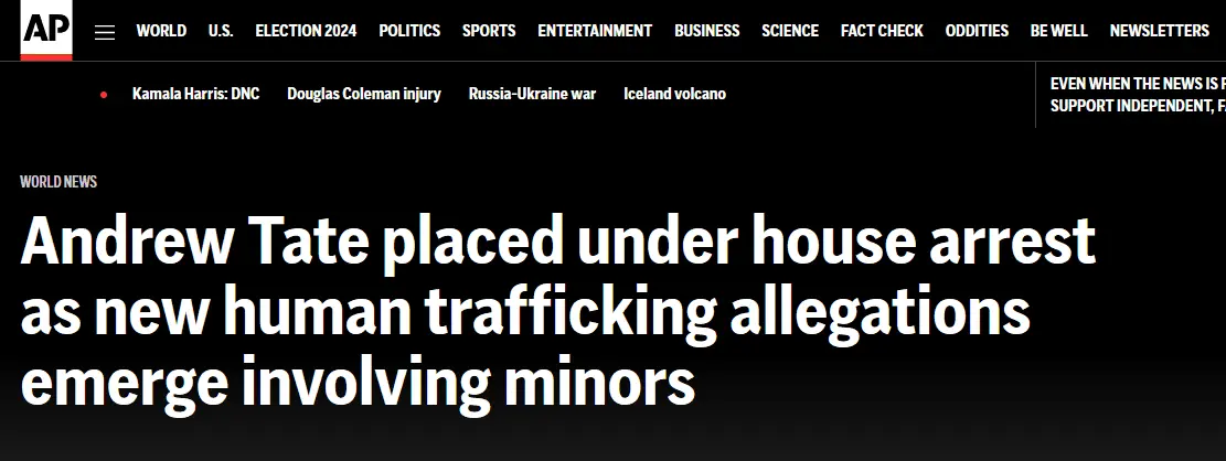 Romania questions Andrew Tate, raids home in new probe.