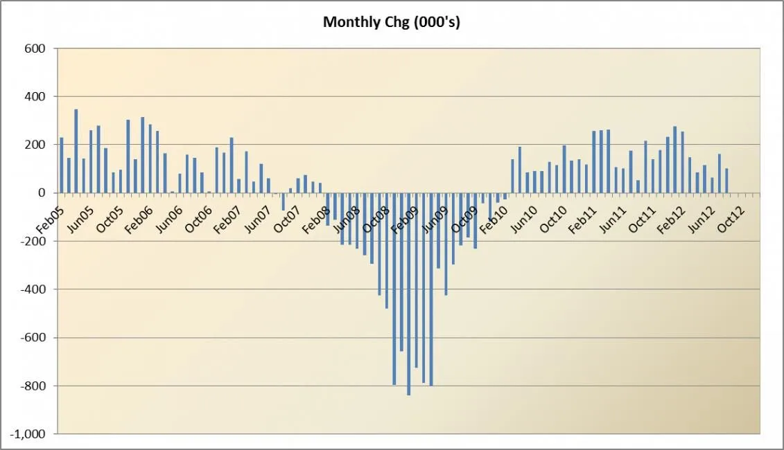 Attached is a graph of the private employment growth. It bottomed out at -810,000 Jan 2009.