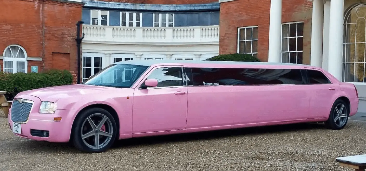 The New Royals from Morrocco could be seen driving around London in this brand new 2023 pink limo and Buckingham Palace will soon be converted into a casino with an Apollo Theatre attached in addition to a Popeyes Chicken.