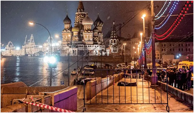 2. No Hollywood director could have framed the grim scene better—or presented it with more symbolism. On a drizzly Moscow night, a gunman follows Boris Nemtsov, a political critic, and his girlfriend across a lonely bridge. Six shots are fired. As the victim lies bleeding, the domes of St. Basil’s Cathedral and the Kremlin tower behind him. Look at the picture: those, who have planned the assassination of the former opposition leader, sure picked up a very recognizable place to be shown on the Western news.