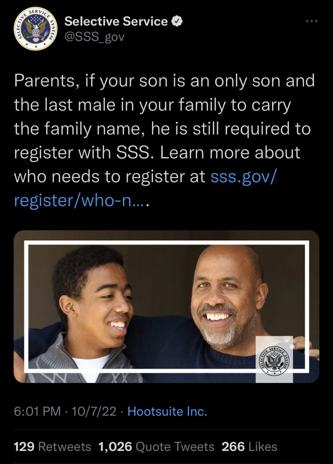 But not daughters, females don't have to do that. Disgusting.Selective Service tweeted this, I'm sure all of you who have been cheering for blood have already signed up though right?