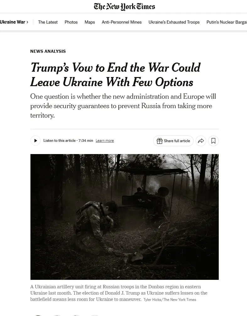 ". . . The one gold-standard security guarantee that Ukraine wants is an invitation to join NATO. But it could not get that under Mr. Biden, and an invitation is unlikely during Mr. Trump’s presidency.