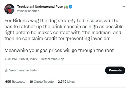 To hell with it. let the Russians invade Ukraine. At this point, I don't even care any more. The invasion will just be one more puss-oozing canker on the Democrat's collective asses, of which they has more than several now: The closing of the Keystone XL pipeline, the border crisis, the Afghanistan withdrawal clusterfuck, rampant crime, inflation, shortages, disruptions in the supply lines, ******* up our military with "wokeness", fentayl seeping through every crack in the country, Russia and China Rising up, and now the coming DC trucker's convoy.