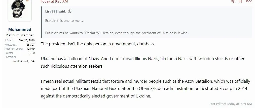 I know it hurts that I end up educating you people more than you like to admit -- but if you don't know that reactionary rightwing morons are justifying this invasion by claiming Ukrainians are Nazis, that is a you problem, not mine....I truly like Buffy and feel bad for my gurl but at times his trolling even make me wonder what the hell!
