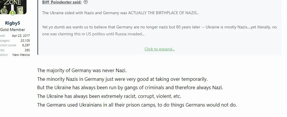 Wrong, and any idiot that compares today Ukrainian people to Nazi Germany is an idiot, simple as that Buffy…Here is what is going to happen...I am going to post 2 different right-wing cucks on this message board claiming Ukrainians are Nazis...