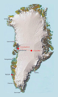 Added later: True Size Map shows the size of countries without distortion brought on by using a Mercator projection map. Because Greenland is so far north, it looks huge. In True Size Map, I pulled it down to the continental USA and it is a lot narrower there - but still longer North-South than the USA so clearly saying the two events are in Greenland cannot mean they must have similar weather conditions