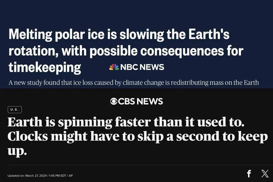 Yep. Same folks who preach the manmade climate myth tell us the world is spinning faster and slower.