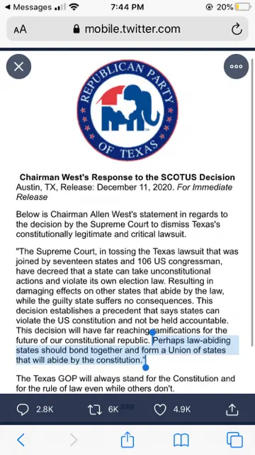 Yes, I believe so....Is this true? When I do a google search I won't get all results?We are living in two different cyber media worlds... we all on the left and some saneon the right, all believed this case would be denied, because Texas had no standing.... All legal and constitutional scholars were saying such as well....