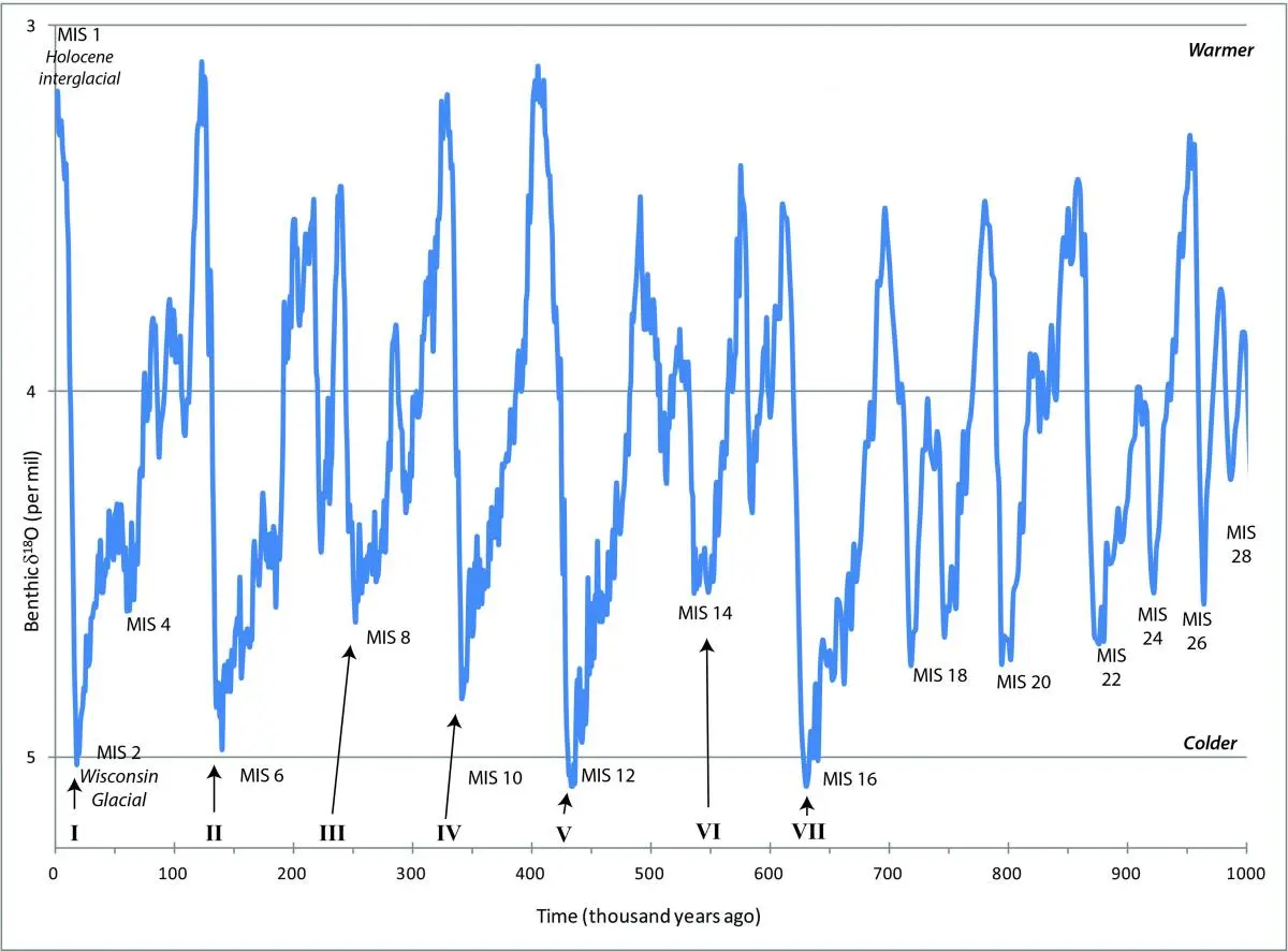 So for the past 15 million years or so, the south pole has had a continuous ice cap. And for the past 3 million years the north pole has oscillated between having an ice cap and not having an ice cap.