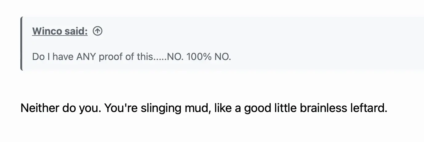 Neither do you. You're slinging mud, like a good little brainless leftard.