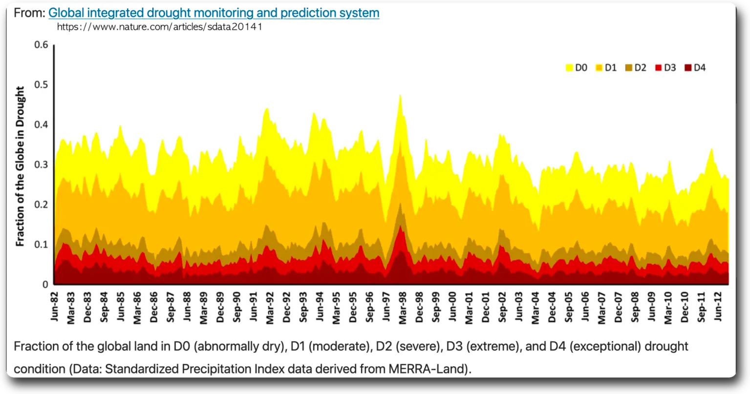 here is the latest study from Nature Magazine showing, guess what? Globally, droughts are decreasing, not increasing.