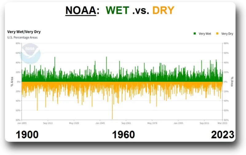 Nor are the extremes in the amount of moisture (droughts, floods) increasing in the US.
