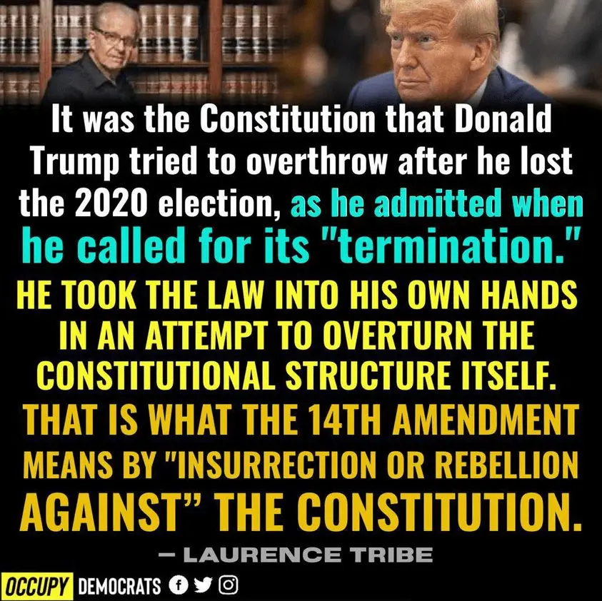 However, Luttig points out that that is not what section 3 says, it says 'engaged in an insurrection against the constitution and aided and abetted the enemies thereof. (The enemies of the constitution, the insurrectionists).