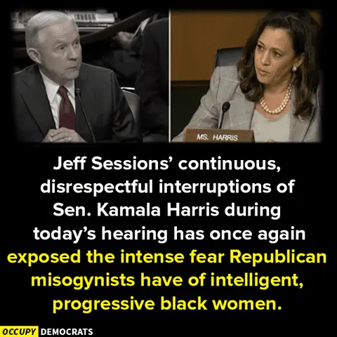 She's black that excuses everything.Run the Kamala. The fact that ANYONE from a state like California can be this rude to a good and honorable gentleman from Alabama boggles ones mind.