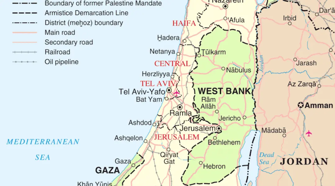 It can't be the West Bank of Israel because it's on the East Side of Israel and you're an idiot.